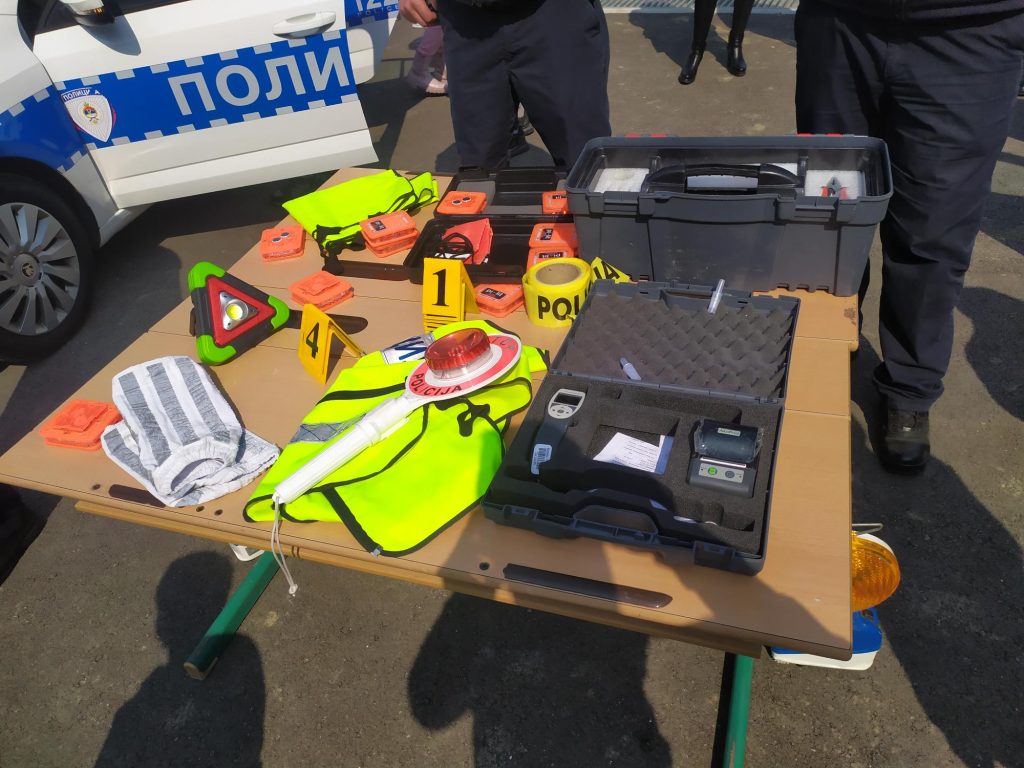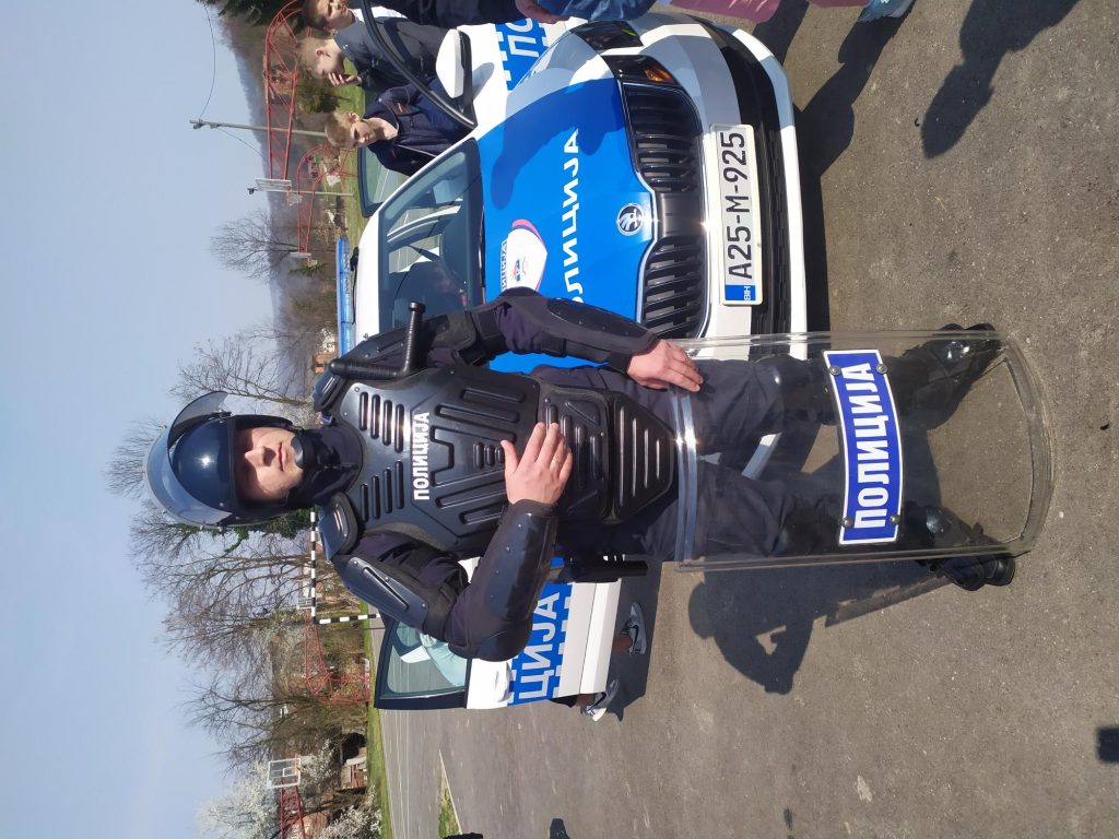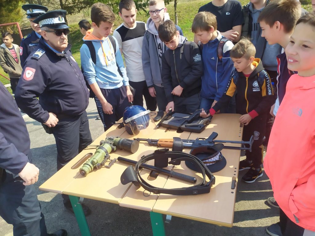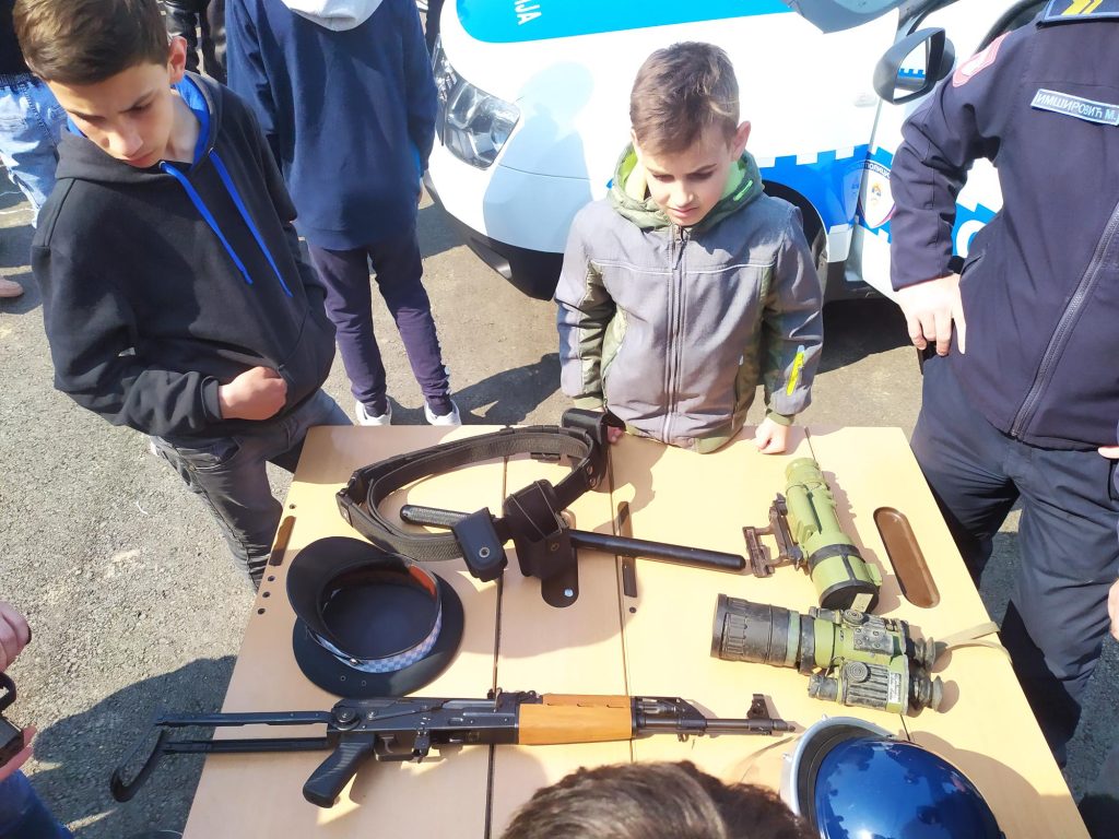 Полицајци су ђацима презентовали дио опреме и материјално-техничких средства којим располажу, као и своја службена возила.